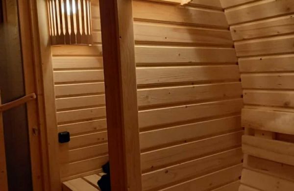 Beheizt wird die Sauna mit einem finnischen Holzofen der Marke Harvia. Bei der Beleuchtung kann zwischen einer warmen Wandbeleuchtung und einer indirekten farbigen LED-Beleuchtung gewählt werden.